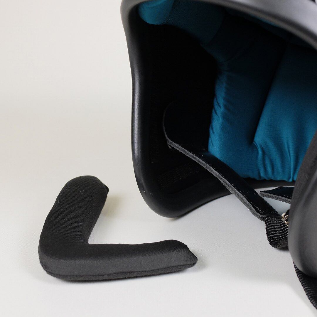 あご先に向かってすぼんでいく流線型上の小振りなシェルを用いながら 内装にウレタンクッション材のインナー(BEETLE liner方式)を採用することで ゆったりとした装着感を実現。